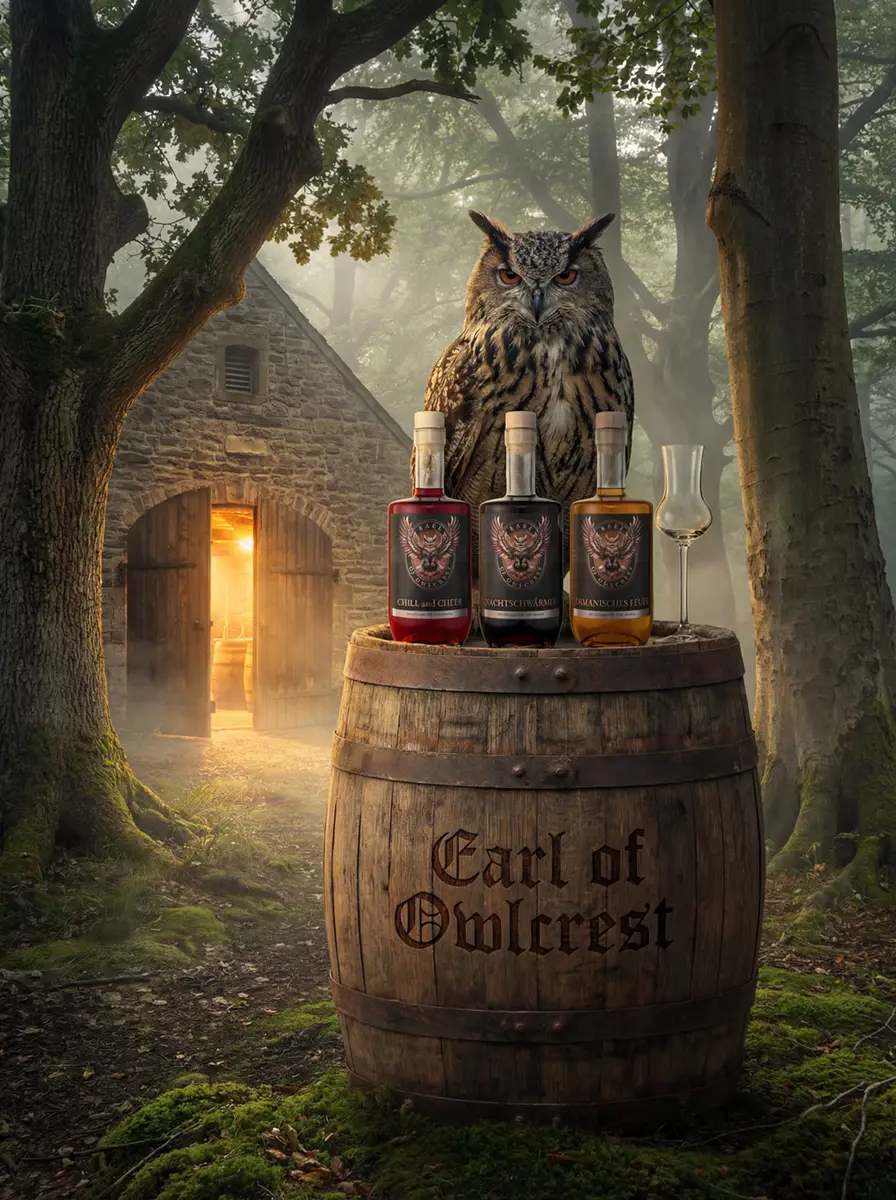 Bei Earl of Owlcrest zelebrieren wir die Kunst des Genießens. Unsere Liköre sind mehr als nur Getränke – sie sind flüssige Poesie, geschaffen für wahre Kenner.